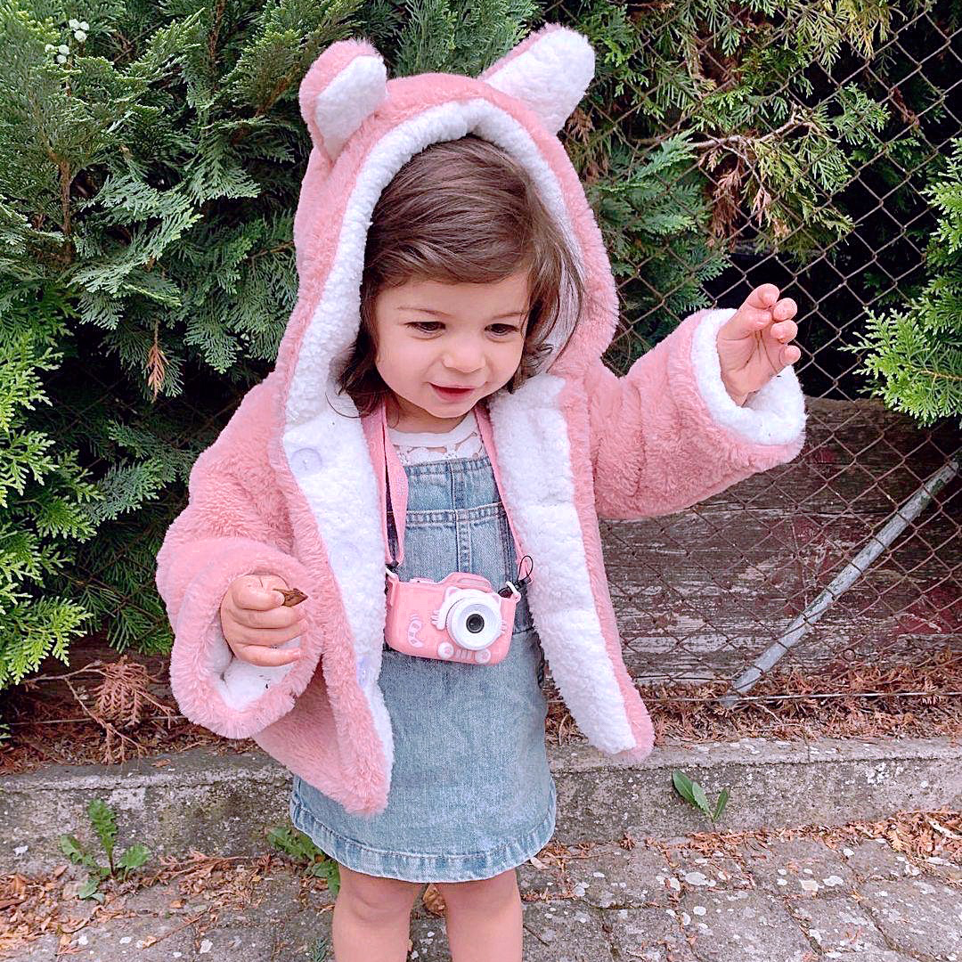 Check out the protective pouch on myFirst Camera 3 Pink! It's shaped like a cute little kitten. I mean, who can resist those adorable furballs, right?