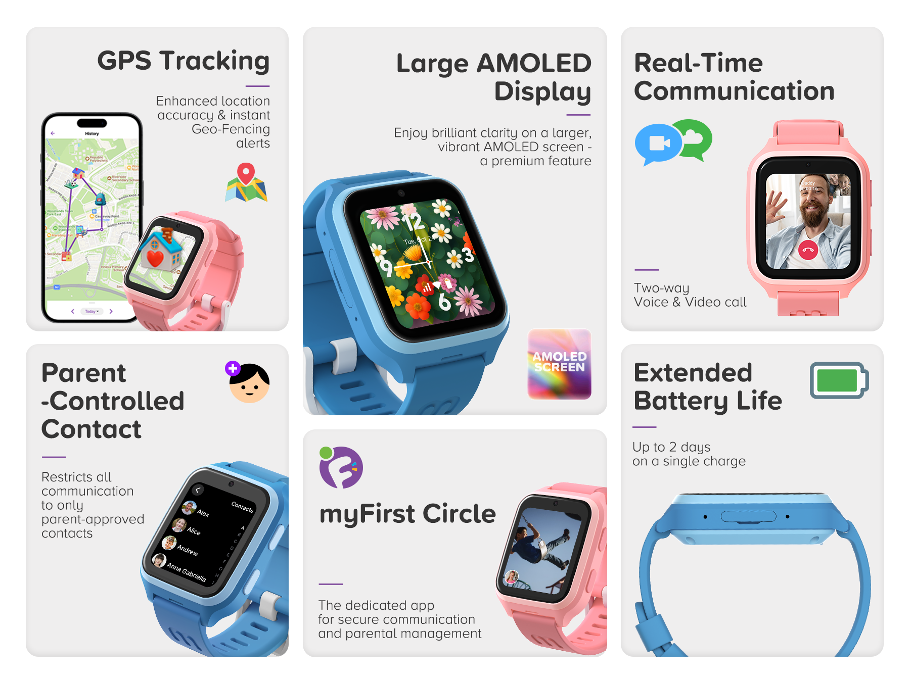 Equipped with a 730mAh battery, the watch provides reliable, all-day usage without constant recharging, ensuring your child stays connected when it matters most.